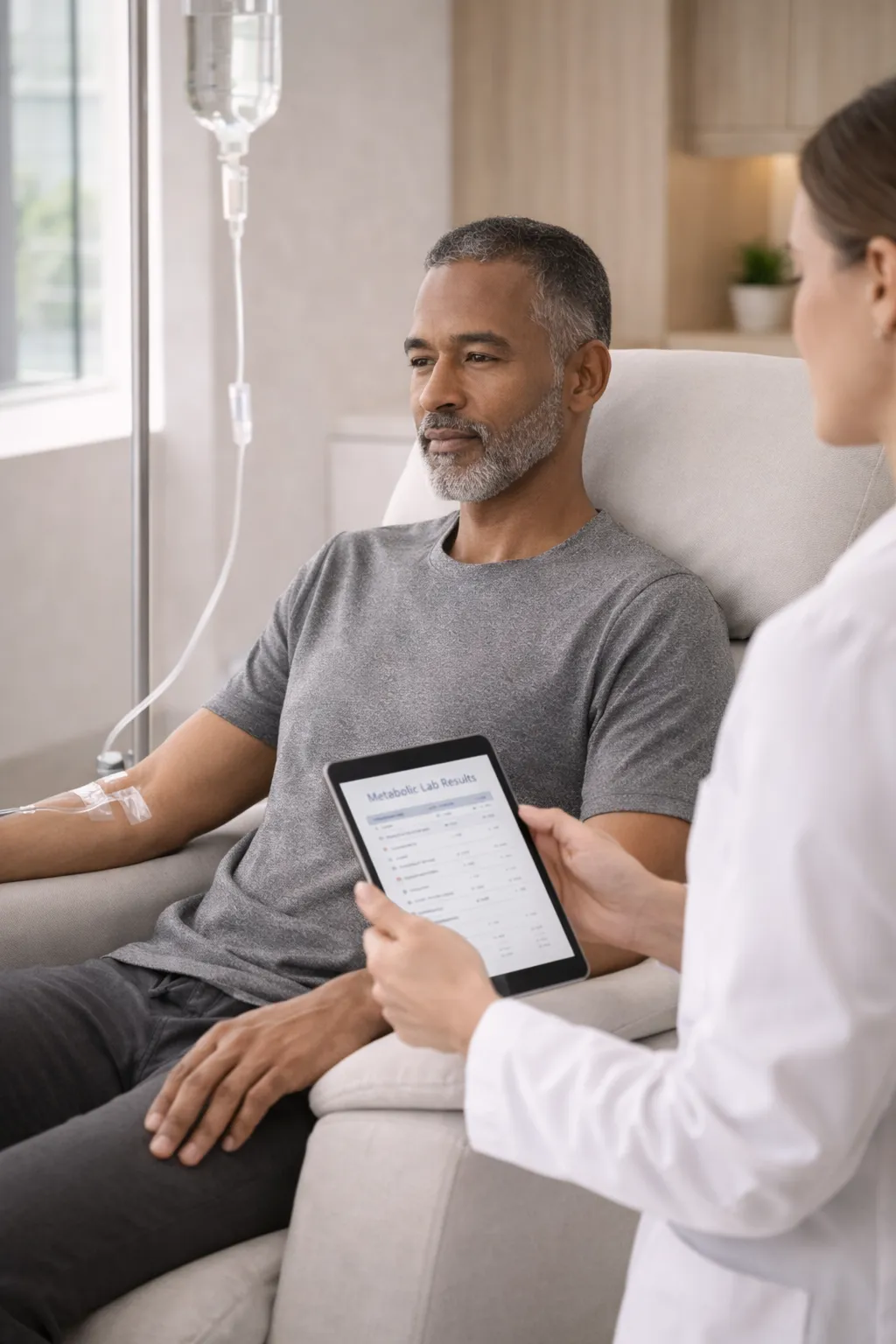 In metabolic resistance, nutrient deficiencies and dehydration can impair mitochondrial output and recovery signaling. IV therapy may be used to support hydration status and micronutrient levels that influence metabolic efficiency.