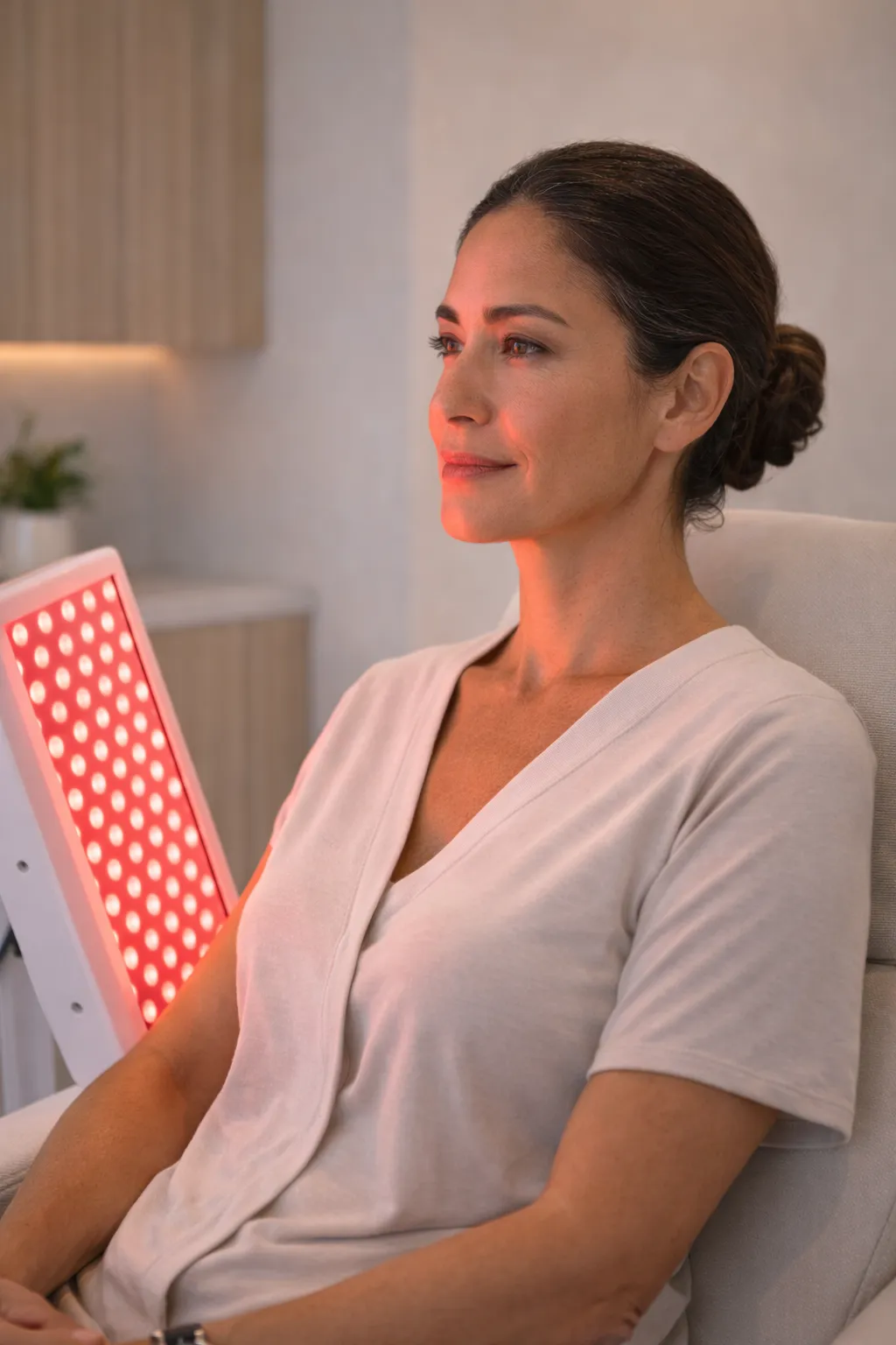 Declining collagen organization, slower recovery, and reduced skin elasticity are often linked to diminished cellular energy output. Red light therapy may be incorporated to support skin structure, microvascular function, and tissue quality.